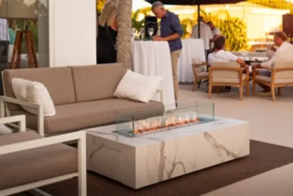 With 6 flame height settings, remote and app control, and built-in wheels for easy relocation, this is a statement fire feature crafted for modern, luxurious living. Choose from two refined Cosentino finishes – Daze or Laurent – engineered from sintered ceramics and quartz for enduring beauty and weather resistance.