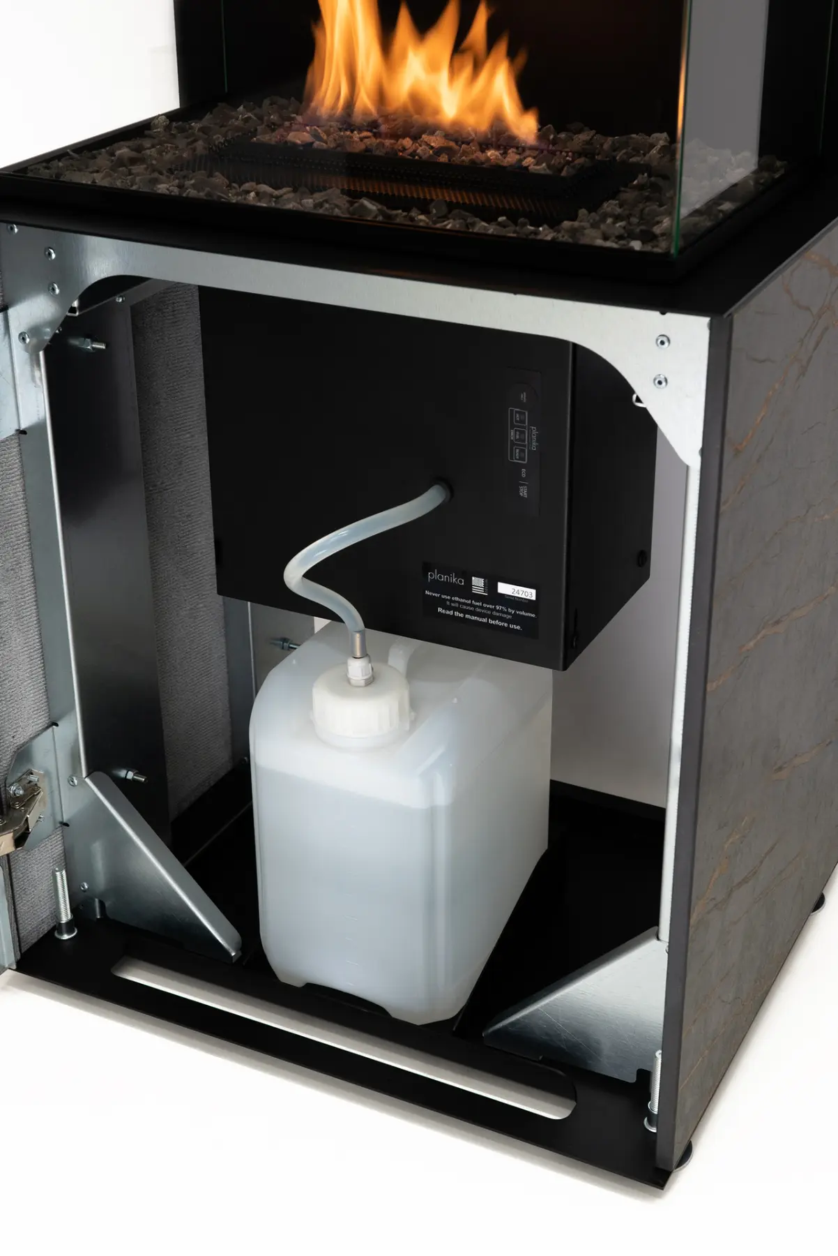 Safe, Easy Refuelling – Change the ethanol canister in seconds with no spills.