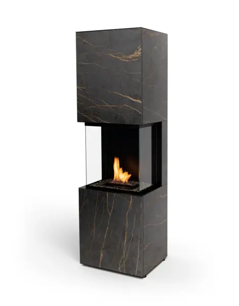A luxury freestanding ethanol fireplace with DEKTON cladding by Cosentino. Utilising clean-burning BEV® Technology, Rock provides real flames with no chimney, no mess, and complete smart control. Ideal for homes where eco-conscious heating and design-led finishes matter.